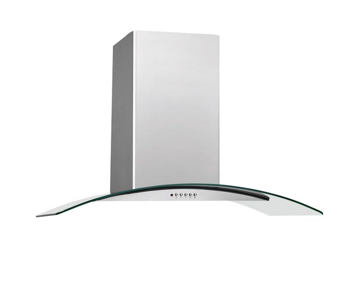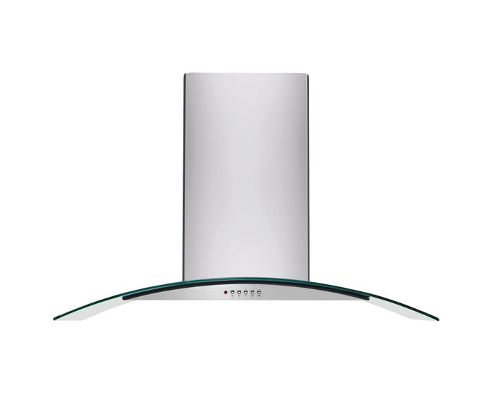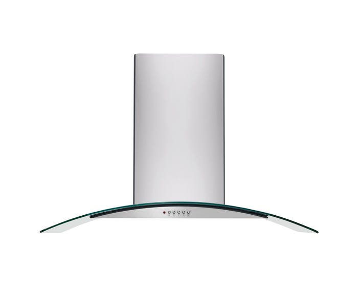Wall-mounted range hood in stainless steel features an attractive glass canopy for eye-catching appeal and the 400-CFM centrifugal blower efficiently removes unwanted smoke and odors to keep your kitchen fresh.