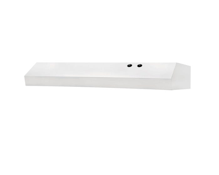 This Frigidaire 30-inch range hood is finished in a bright white and installs under the cabinet for a modern look in your kitchen. You can select between external or recirculating exhaust with this convertible hood, which also includes a dishwasher-safe filter and an incandescent light to illuminate the cooktop below.